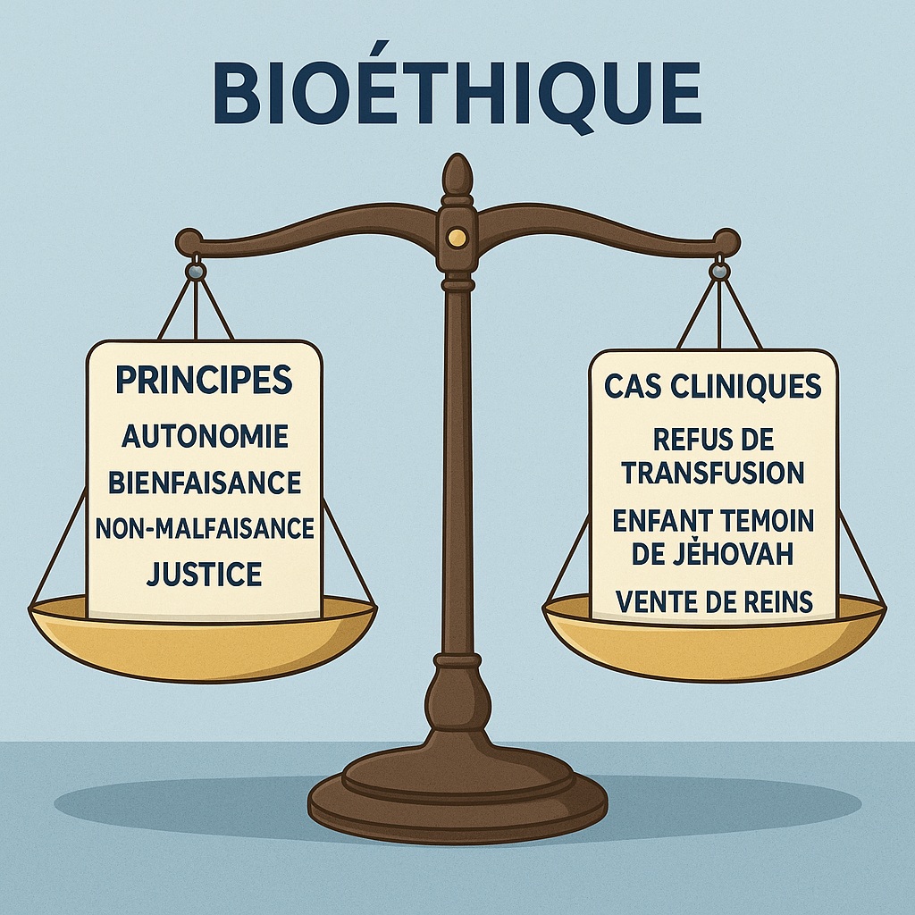 Cet article se propose de revisiter ces principes à travers trois cas concrets présentés par T. L. Beauchamp : le refus de transfusion par un adulte Témoin de Jéhovah, le refus parental pour un enfant, et la question controversée de la vente de reins. Trois situations, trois dilemmes, et une seule méthode : avancer par ajustements successifs pour atteindre ce que les philosophes appellent un « équilibre réfléchi ».